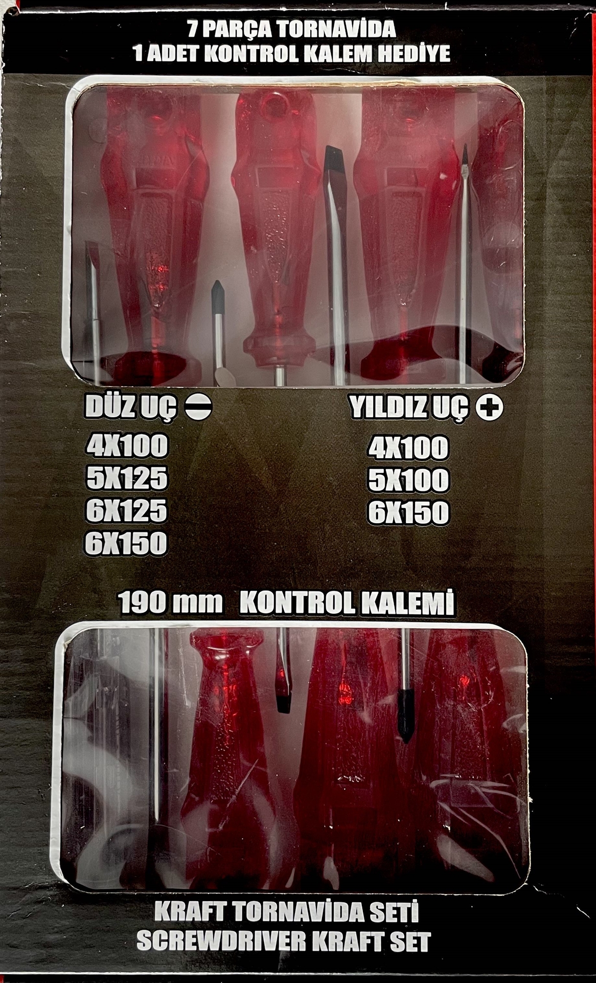 RAYNO 7 PARÇA TORNAVİDA SETİ - 4 ADET DÜZ UÇ - 3 ADET YILDIZ UÇ - 1ADET 190MM KONTROL KALEMİ